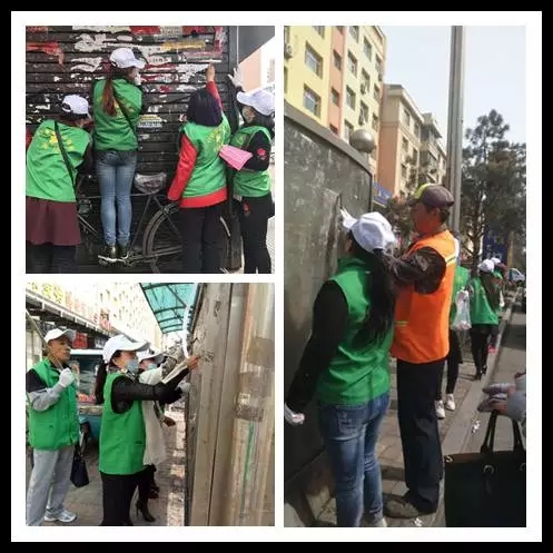 三叶草爱心公益会志愿者在这次活动中表现突出,服装衣帽整齐,人员队伍素质较高,在雷炎大街和向阳大街商业集中区进行入户宣传,他们在会长姚伟东及各自组长的带领下,带着喷壶、腻刀、抹布等工具,对公共场所部分小广告进行了清除。
